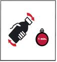 Retourner le flacon et bien agiter (pendant au moins 15 secondes) jusqu'à ce que tous les granulés soient mélangés avec l’eau.