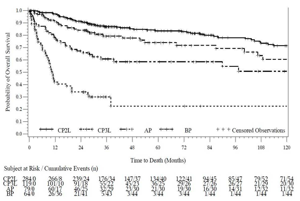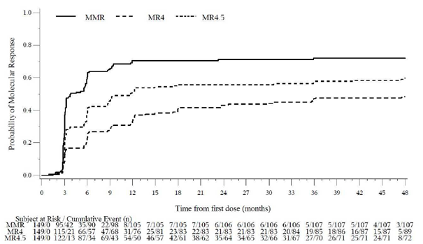 · LMC Ph+ en PC, en phase accélérée (PA) et en crise blastique (CB) précédemment traités par un ou plusieurs inhibiteurs de la tyrosine kinase (ITK) et pour lesquels l'imatinib, le nilotinib et le dasatinib ne sont pas considérés comme des options thérapeutiques appropriées, à l’exception des patients résistants à l’imatinib et présentant la(es) mutation(s) d’acides aminés F-317L et/ou F-486S.