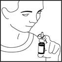 8. Inspirez doucement et n'inclinez pas la tête vers l'arrière après administration. Ceci empêche que le médicament ne coule dans votre gorge et ne produise un goût désagréable (voir figure 4).