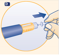 D Retirez le capuchon interne de l’aiguille et jetez-le.