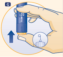 Vérifiez que la solution à l'intérieur du stylo est limpide et incolore en basculant le stylo de haut en bas une ou deux fois. N'utilisez pas le stylo si la solution à l’intérieur est trouble ou opaque.