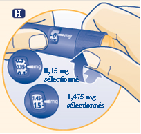 Lorsque le stylo contient moins de 2,0 mg, le sélecteur de dose se bloque au nombre de mg restant.