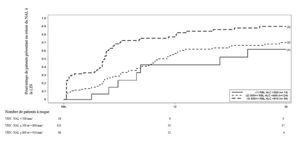 Une vigilance accrue en raison d’un risque majoré de LEMP est recommandée chez les patients présentant une lymphopénie comme suit :