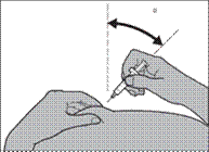 Si vous injectez FRAGMINE à un adulte ou à vous-même, tenez la seringue au-dessus de la peau pliée en la maintenant à angle droit (c’est-à-dire verticalement, comme indiqué sur le schéma, et non en biais). Insérez l’aiguille dans la peau jusqu’à ce que l’aiguille soit complètement insérée (voir figure 5).