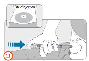 · Appuyez sur le bouton d'injection pendant 8 secondes permet d'injecter et de libérer la dose complète sous votre peau.