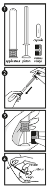 Utilisez l’applicateur pour introduire la capsule dans le vagin de préférence le soir au coucher.