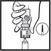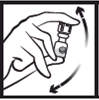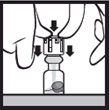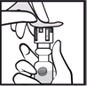 1. Placer les doigts de part et d’autre de l’opercule situé au centre du bouchon et exercer une forte pression verticale vers le bas jusqu’à enclenchement. Le joint en caoutchouc tombe et le solvant s’écoule dans le compartiment inférieur contenant la poudre. Il faut éviter d’appliquer une pression excessive car cela peut casser le flacon et potentiellement blesser l’utilisateur.