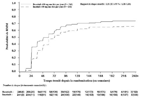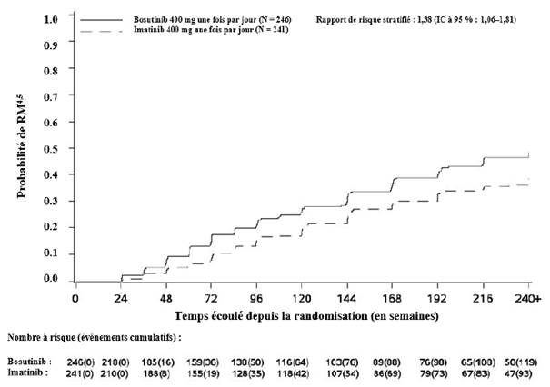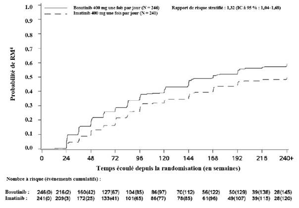 Dans les études cliniques menées sur les deux indications, le traitement par bosutinib a été poursuivi jusqu’à progression de la maladie ou intolérance du traitement.