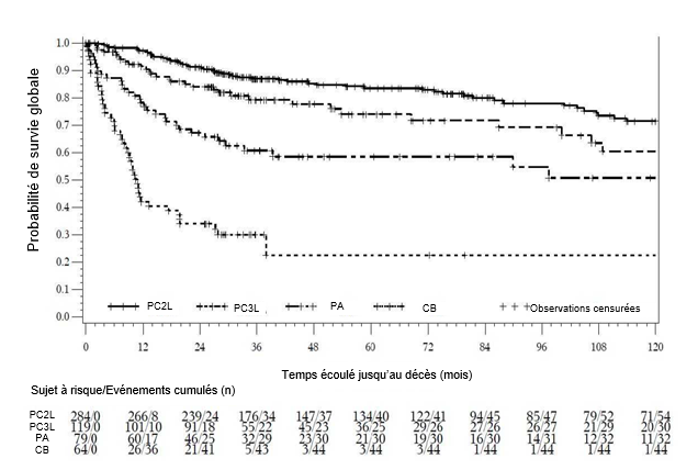 · LMC Ph+ en PC, en phase accélérée (PA) et en crise blastique (CB) précédemment traités par un ou plusieurs inhibiteurs de la tyrosine kinase (ITK) et pour lesquels l'imatinib, le nilotinib et le dasatinib ne sont pas considérés comme des options thérapeutiques appropriées.