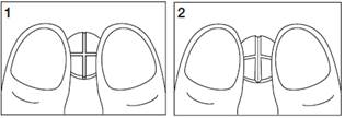 · pour obtenir 1/4 (un quart) de comprimé, recommencez l'opération à partir d'1/2 (un demi) comprimé (voir schémas 3 et 4).