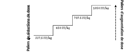 La posologie initiale est de 50 UI/kg 3 fois par semaine.