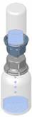 Retirer l’opercule du dispositif Mix2Vial. Sans extraire le dispositif de son emballage, enclencher l’extrémité bleue du Mix2Vial sur le bouchon du flacon de solvant. |