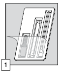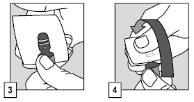 (3) Effectuez des tapotements sur la tête de l’ampoule pour vous assurer qu’il n’y reste plus de liquide. Recouvrez la tête de l’ampoule à l’aide d’une compresse et placez l’un de vos pouces sur le point blanc.