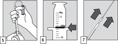 Pour les patients pesant plus de 40 kg, 2 ampoules sont nécessaires. La dose minimale pouvant être prélevée par ampoule correspond à une dose pour 3 kg. Pour les patients pesant 41 et 42 kg, nécessitant plus d’une ampoule, prélevez une dose correspondant à moins de 40 kg dans la première ampoule et prélevez le complément de dose dans la seconde ampoule, selon les exemples ci-dessous :