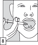 (8) Videz le contenu de l’applicateur pour administration orale dans la bouche du patient. La solution doit être avalée immédiatement
