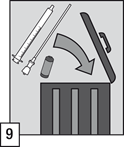(9) Après utilisation, jetez l’ampoule, la canule filtrante, l’applicateur pour administration orale ainsi que tout contenu inutilisé, dans un conteneur réservé à cet effet et conformément aux exigences locales en vigueur concernant les substances contrôlées et les accessoires pharmaceutiques.