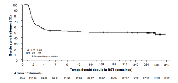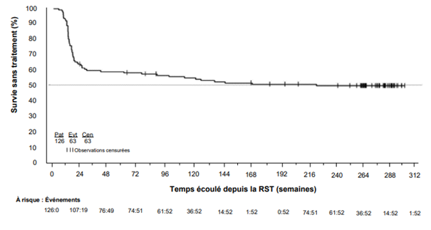 Le traitement doit être poursuivi aussi longtemps qu’un bénéfice clinique est observé ou jusqu’à ce qu’il entraîne une toxicité inacceptable.