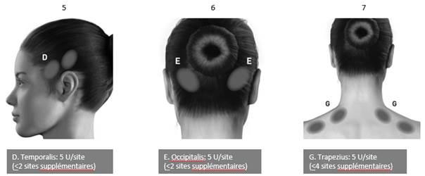Les doses optimales pouvant être injectées ainsi que le nombre de sites d’injection par muscle n’ont pas été établis pour toutes les indications. Un schéma thérapeutique individuel devra alors être défini par le médecin. Les doses optimales doivent être déterminées par titration sans injecter au-delà de la dose maximale recommandée. Comme pour tout traitement médicamenteux, la posologie initiale chez un patient naïf doit commencer à la dose efficace la plus faible.