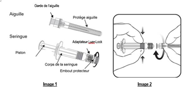 Poudre et solvant pour solution injectable en seringue préremplie.