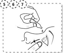 7. Pressez légèrement le récipient unidose afin de faire tomber deux gouttes dans votre œil, puis relâchez la paupière inférieure.