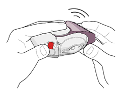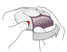 3. Le patient doit ensuite expirer doucement et fermer le couvercle de l’inhalateur jusqu’à entendre un déclic.