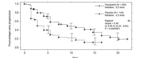 Des cas de PID, parfois d’issue fatale, ont été rapportés avec le pazopanib (voir rubrique 4.8). Les patients devront être surveillés afin de détecter des symptômes pulmonaires pouvant indiquer une PID/pneumopathie inflammatoire et le traitement par pazopanib devra être arrêté chez les patients développant une PID ou une pneumopathie inflammatoire.