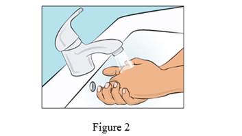 · Lavez-vous soigneusement les mains et laissez-les sécher (Figure 2). Utilisez un gel désinfectant comme on vous l'a montré pendant la formation.