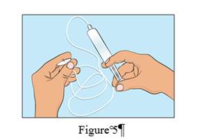 · Pour amorcer la tubulure d’administration, attachez la seringue à la tubulure de perfusion et appuyez délicatement sur le piston pour remplir la tubulure de CUTAQUIG et éliminer toute la quantité d'air. (Figure 5).