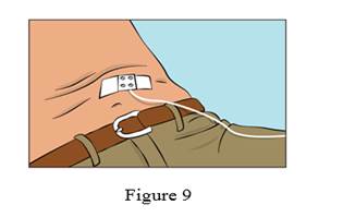 · Fixez l’aiguille en place en la recouvrant d’une compresse stérile et d’un adhésif ou d’un pansement transparent (Figure 9).