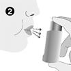 3. Le patient doit tenir la cartouche verticalement, orientée vers le haut, et serrer l'embout buccal entre les lèvres sans mordre l'embout buccal.