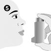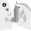 4. En même temps, le patient doit inspirer lentement et profondément par la bouche. Dès le début de l'inspiration, il doit appuyer sur le haut de l'inhalateur afin de libérer une bouffée.