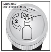 1.Pour ouvrir le flacon, tournez le bouchon de sécurité-enfant en appuyant dessus, comme indiqué sur le schéma ci-après :