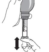 · Maintenez la seringue pour administration orale en place et retournez délicatement le flacon. · Tirez lentement et entièrement le piston vers le bas afin que la seringue se remplisse. Repoussez complètement le piston vers le haut afin d’expulser les éventuelles grosses bulles d’air qui pourraient être retenues dans la seringue pour administration orale. |