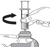 · Redressez délicatement le flacon. Retirez la seringue pour administration orale en la tournant doucement pour la faire sortir de l’adaptateur en plastique. |