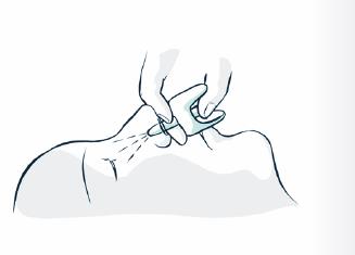4. Soutenez la nuque. Placez le pulvérisateur dans une narine. Appuyez fermement sur le piston jusqu'à ce qu'il clique.
