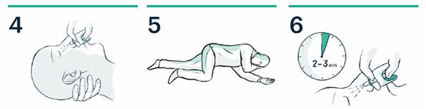 6. Après 2 à 3 minutes, s'il n'y a pas d'amélioration, une deuxième dose doit être administrée dans l’autre narine.