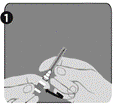 Etape 1 : Tournez pour détacher le socle (H) de l'une des deux aiguilles identiques. Ce sera l’aiguille utilisée pour la reconstitution. Ne retirez pas le protège-aiguille en plastique (G).