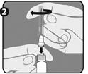 La longueur de l’aiguille ne permettra pas d’atteindre le fond du flacon, il est donc nécessaire de retourner le flacon et de tirer l’aiguille vers l’arrière près du bouchon. Cela permettra de prélever la totalité de la solution de vaccin du flacon.