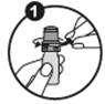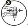 3. Tenez le flacon tête en bas Appuyez sur le milieu du flacon suffisamment fort de façon à extraire 1 à 2 gouttes En cas de défaut d’apparition de la goutte, reprenez les étapes A2 et A3. |