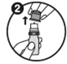 2. Faites pivoter rapidement le flacon vers le bas suffisamment fort afin d’éjecter la goutte résiduelle 3. Replacez le bouchon protecteur après usage |