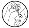 1. En regardant vers le haut et en tirant la paupière inférieure vers le bas, positionnez le flacon au-dessus de l’œil et appuyez progressivement sur le milieu du flacon jusqu’à l’arrivée de la goutte Evitez de toucher l’œil ou la paupière avec l’embout du flacon |