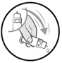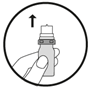 2. Faire pivoter rapidement le flacon vers le bas suffisamment fort afin d’éjecter la goutte résiduelle ;