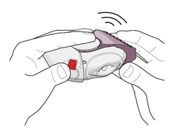 4. Fermez l’inhalateur pour le maintenir propre en tournant vers vous le couvercle de l’embout buccal rose clair aussi loin que possible jusqu’à entendre un déclic (voir figure 4). Le couvercle de l’embout buccal est maintenant retourné à sa position initiale. L’inhalateur est maintenant prêt pour que vous preniez votre prochaine dose prévue.