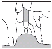 Si vous injectez FRAGMINE à un adulte ou à vous-même, tenez la seringue au-dessus de la peau pliée en la maintenant à angle droit (c’est-à-dire verticalement, comme indiqué sur le schéma, et non en biais). Insérez l’aiguille dans la peau jusqu’à ce que l’aiguille soit complètement insérée (voir figure 5).
