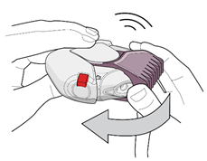 3. Le patient doit ensuite expirer doucement et fermer le couvercle de l’inhalateur jusqu’à entendre un déclic.