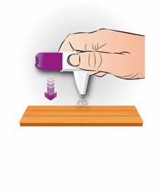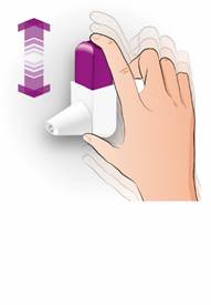 Comment vider l’embout buccal Si vous avez appuyé sur le déclencheur de l’inhalateur accidentellement, ou appuyé plus d’une fois ou si vous avez expiré dans l’inhalateur, videz l’embout buccal. · Tapotez l’embout buccal sur un plan de travail ou sur la paume de votre main pour faire sortir la poudre. · Puis reprenez les étapes Agiter-Appuyer-Inhaler. |