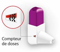 Rappelez-vous 1. Agiter – 2. Appuyer – 3. Inhaler. Après avoir inhalé la dose, rincez-vous la bouche avec de l’eau puis crachez l’eauNe mouillez pas votre inhalateur, protégez-le de l’humidité. |