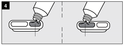 Prélevez une petite portion du gel de la cavité de mesure. Le dispositif de mesure ne doit pas être placé dans la bouche pour appliquer le gel. |