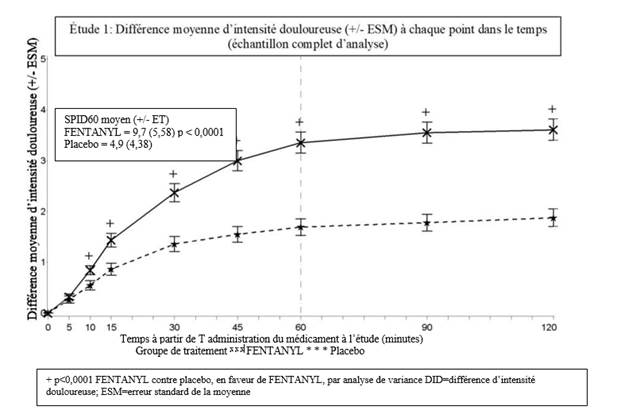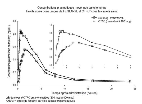 Le temps de désagrégation totale du comprimé après administration par voie buccale transmuqueuse ne semble pas avoir d’influence sur l’exposition systémique précoce au fentanyl.