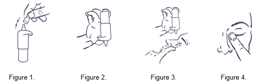 5. Approchez l'embout du flacon de l'oeil atteint, sans toucher l'oeil.
